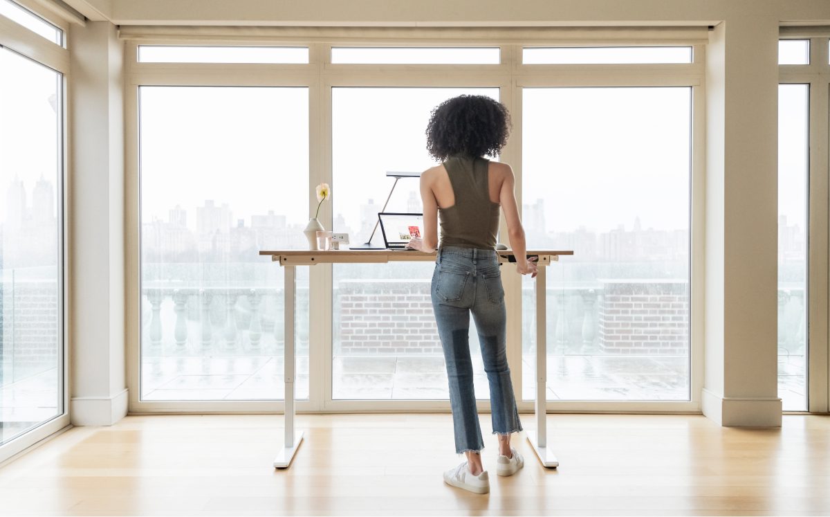 התאמה אישית לאורך כל היום: השולחן מאפשר מעבר קל בין ישיבה לעמידה, מה שתורם להפחתת ישיבה ממושכת – אחת מהגורמים המרכזיים לכאבי גב ולבעיות בריאותיות הקשורות לאורח חיים בעבודה ממושכת מול מחשב.