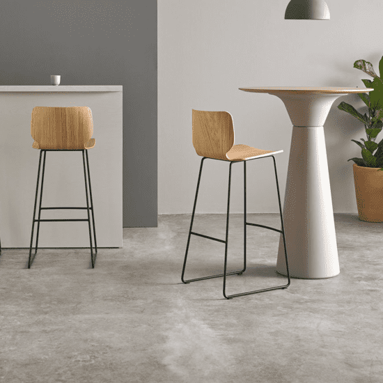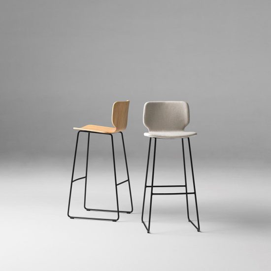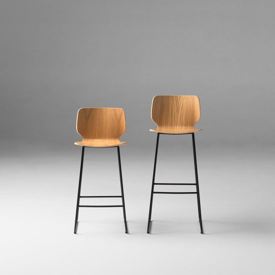 סדרת כסאות הבר NIm למותג הספרדי Inclass במבנה ארגונומי ייחודי לישיבה נוחה, מעניקה חמימות ועוצמה לחלל בגימור עץ טבעי או מרופד חלקית או מלא. שלדת הכסא בר היא במבנה של רגלי מיגלש.