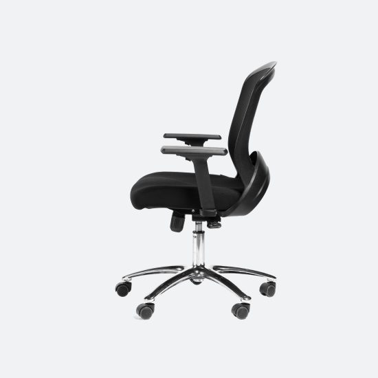 כסא בן עם גב רשת שחורה במבנה קעור התומך ביושב, במושב בליטה ייחודית בספוג המושב לתמיכה מרבית לשעות עבודה מרובות. מנגנון סנכרוני לשינוי זווית הגב והמושב באופן מסונכרן ביחס של 2:1. בסיס מעוצב בציפוי כרום ניקל חזק במיוחד. ידיות מתכווננות לגובה לתמיכה בעת העבודה על המחשב.