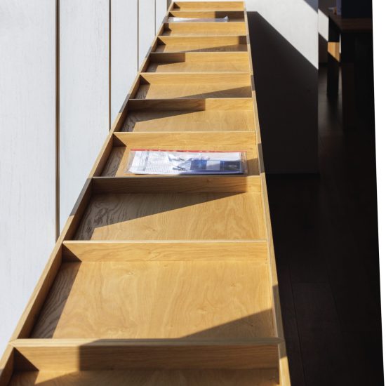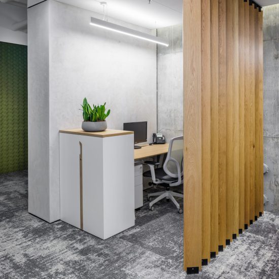 מערכת ECO בעיצובו של Aitor García de Vicuña כוללת מלבד שולחנות ועמדות עבודה, גם מערכת אחסון מעוצבת עם פרטים ייחודים המשווים לארונות ולשידות מראה מקורי ויוקרתי. שילוב של פסי עץ טבעי וידיות שקועות מעניקות לאחסון נופך פיסולי ומשדרגות את החלל המשרדי.