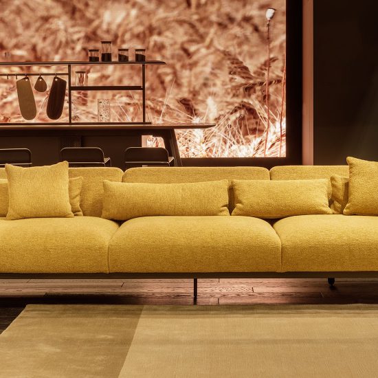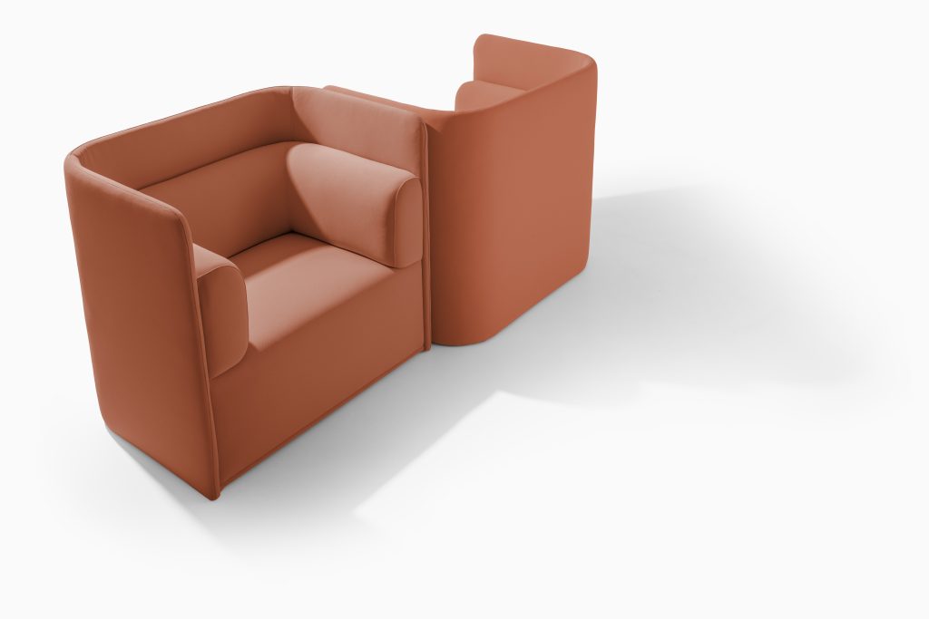 מערכת הישיבה 'פולד' למותג TRUE לבית העיצוב האיטלקי 967 ARCH קולקציה הכוללת ספה וכורסה בעלת שני פנים: חזית מרופדת וגב עץ. ספה קלילה ומעוצבת למראה, אך חזקה ויציבה. דפנות העץ מכופפות בשלמות, בניגוד לקשיחות של החומר, הריפוד מתפתל בסינרגיה ובארגונומיה מושלמת עם העץ המכופף.
