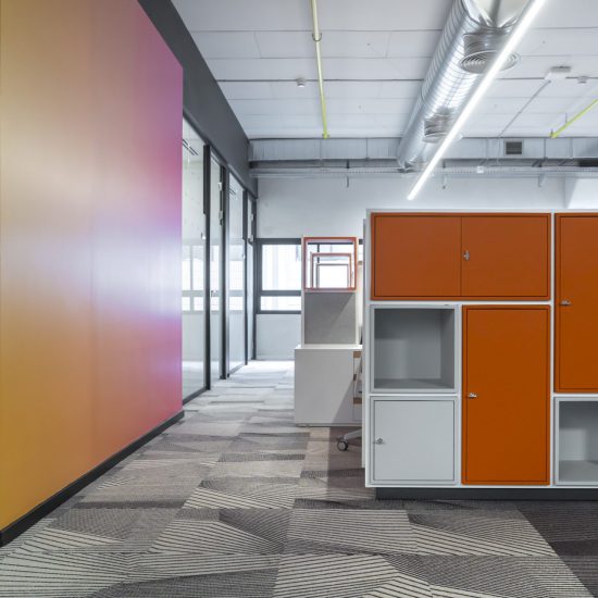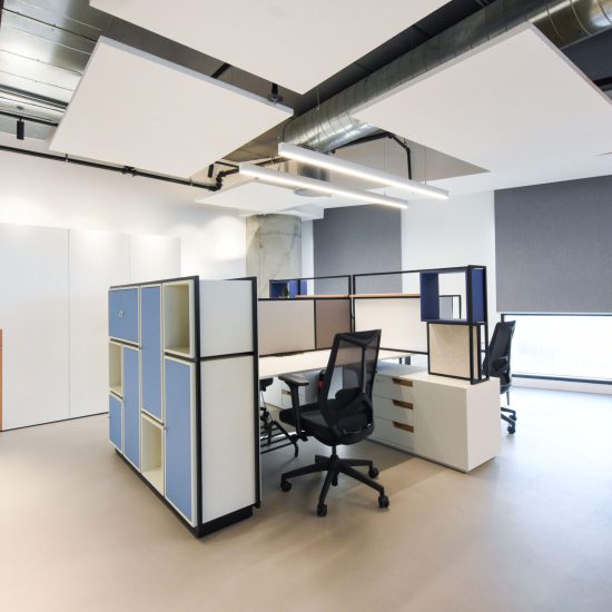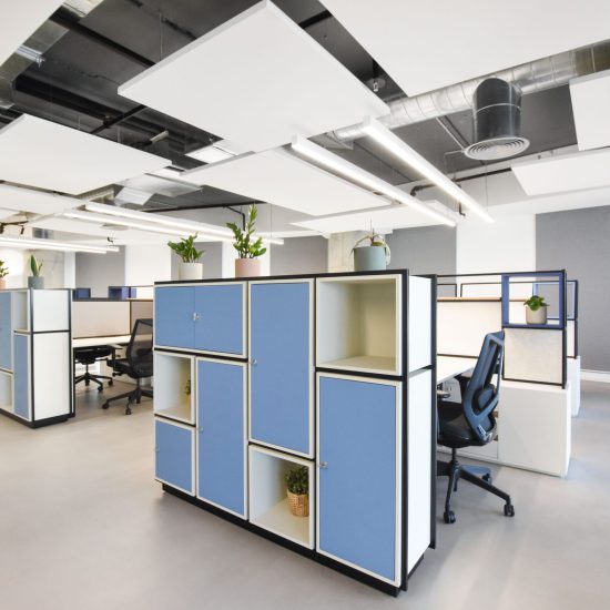 מערכת Matilda למותג FAMO מעניקה את התמיכה להפיכת הארגון ל social space שבו הדגש הוא על בריאות ורווחת העובד תוך טיפוח האנרגיה והמוטיבציה לעבודה פרודוקטיבית מלאת השראה ומקוריות. מחיצות המתלידה מעניקות אחסון וחציצה בין המעברים לעמדות העבודה ומכניסות צבע והרמוניה לחלל.