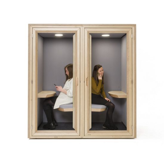 תא עבודה אקוסטי זוגי וחסכוני במקום. תאי עבודה  שקטים הם הכרח בתוך באז ההייטק של סביבת העבודה המודרנית ויש צורך הולך וגובר לקיים פגישות שקטות ואינטימיות, פגישות זום או סתם לשוחח בנעימים. בין אם אתם זקוקים לחלל עבודה זוגי או משימה הדורשת ריכוז ושקט, יש לנו את הפתרון האולטימטיבי. בהסתמך על מורשת העיצוב העשירה של קליפורניה, Residence Max יוצר מתחמים אייקוניים פרטיים ואקוסטיים בתוך מקום העבודה, ומספק מקלט שליו. בהשראת 'המגורים' היפים, הבתים המודרניים והחדשניים שנבנו על ידי אדריכלים מובילים לאורך המאה ה-20, השימוש בשטח רצפה מינימלי. בעל לוחות מזוגגים, המאפשרים לאור להמשיך לזרוח דרך סביבת העבודה. גימור דיקט עץ מספק אסתטיקה גולמית וטבעית. התא מעוצב עבור עבודה בעמידה או בישיבה למשתמש אחד.  Residence Work&Meet מתהדר באיכות אקוסטית גבוהה במיוחד, בעל זרימה מתמדת של אוויר צח עם פתחי אוורור מובנים ועיצוב במגוון עצום של אפשרויות וגמרים., Residence Work&Meet תוכנן לנוחות של שעות עבודה ארוכות . Residence Work&Meet בעל תו ירוק ומכיל חומרים בעלי פליטה נמוכה ומיועד לספק חווית משתמש באיכות גבוהה.