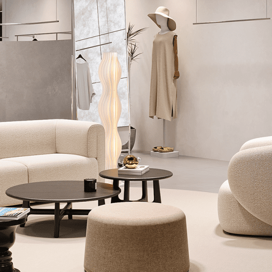השולחן זמין בשתי מידות: קוטר 60 ס"מ, גובה 40 ס"מ קוטר 90 ס"מ, גובה 30 ס"מ ניתן לשלב בין הגדלים ליצירת קומפוזיציה הרמונית וגמישה בחלל.