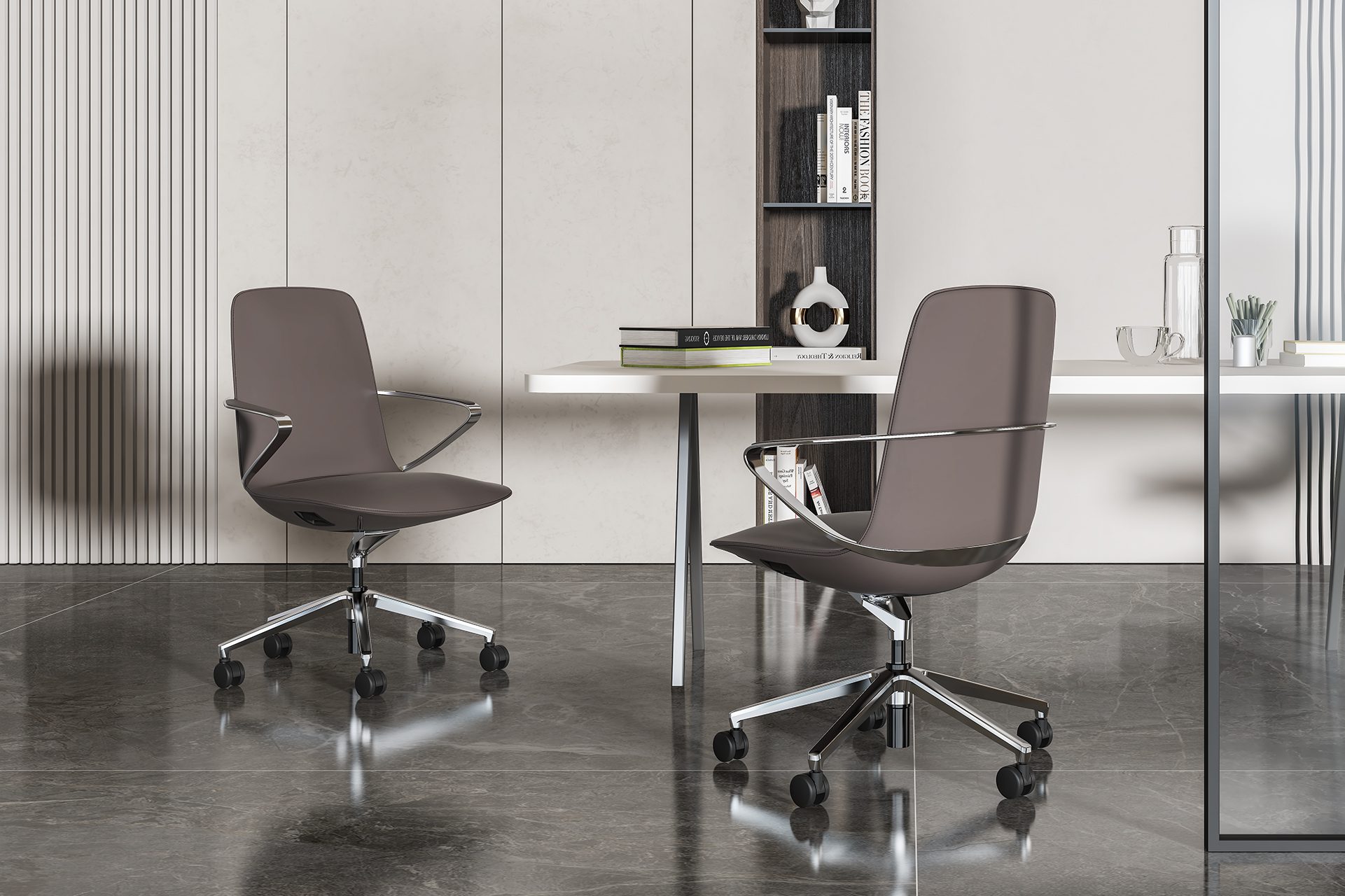 כיסא דגם VISION מיועד לחדרי ישיבות ולחדרי מנהלים, משלב עיצוב מודרני נקי עם תחושת חמימות טבעית. זמין לבחירה עם גב בינוני או גב גבוה, וכולל מנגנון מתכוונן המאפשר התאמה נוחה וזורמת לאורך יום העבודה. הקווים המעודנים והפרופורציות המדויקות מעניקים לכיסא מראה מתוחכם ובטוח בעצמו, בעוד המבנה הארגונומי תומך בגב ומספק נוחות ממושכת גם בישיבות ארוכות. מסגרת קיט אלומיניום אלגנטי בשלושה גוונים, מבטיחים עמידות גבוהה וגימור מוקפד. הכיסא זמין במבחר רחב של גוונים לריפוד ומאפשר התאמה מושלמת לשפה העיצובית של כל חלל משרדי.