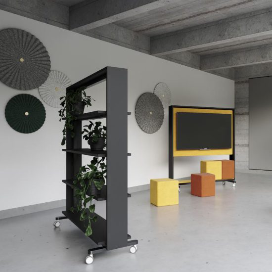 משרד דינמי קריאטיבי הוא מערכת ריהוט התומכת באנשים לעבוד בצורה גמישה יותר. בניית מרחבים דינמיים שיכולים להשתנות בכל רגע נתון, עם מוצרים המאפשרים דינמיות בחלל תומכים בעובדים ביצירת קשרים חזקים יותר עם הארגון, והפגנת יצירתיות גבוהה יותר במיוחד כאשר עוברים מעבודה פרטנית לעבודת צוות. ריהוט ואביזרים ניידים, מסכי מצגת ולוחות מחיקים ניידים על גלגלים, מאפשרים לצוות להרכיב או להפריד מצגות דינמיות וכך לעשות שימוש יעיל בשטחים פתוחים. שיתוף הפעולה המלא בחילופי מידע ותקשורת פתוחה בין מחלקות חיוני כדי לייצר רעיונות מצוינים ומקוריים, לכן מרחב פתוח ל brain storming מאפשר בכל דיון לעלות רעיונות חדשים, בתוך אווירה וחלל שמעורר השראה ויצירתיות. מרחב שיתוף הפעולה בחלקים אלה של המשרד מעודד אנשים גם לשנות את תנוחות הישיבה שלהם כדי להקל על הגוף בזמן הדיונים לפני שהם חוזרים לתנוחת הישיבה היותר מסורתית מול השולחן. המכשירים הטכנולוגיים השונים מאפשרים לאנשים לתקשר, לשתף פעולה, לתכנן ולבצע פגישות בלתי פורמליות.