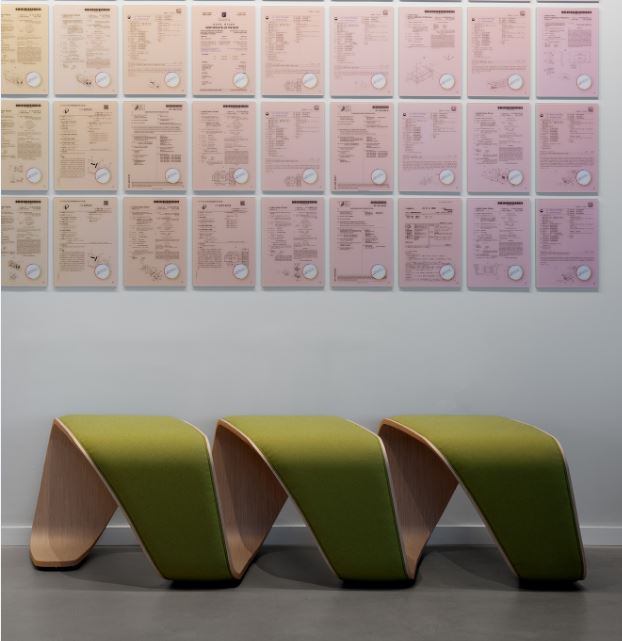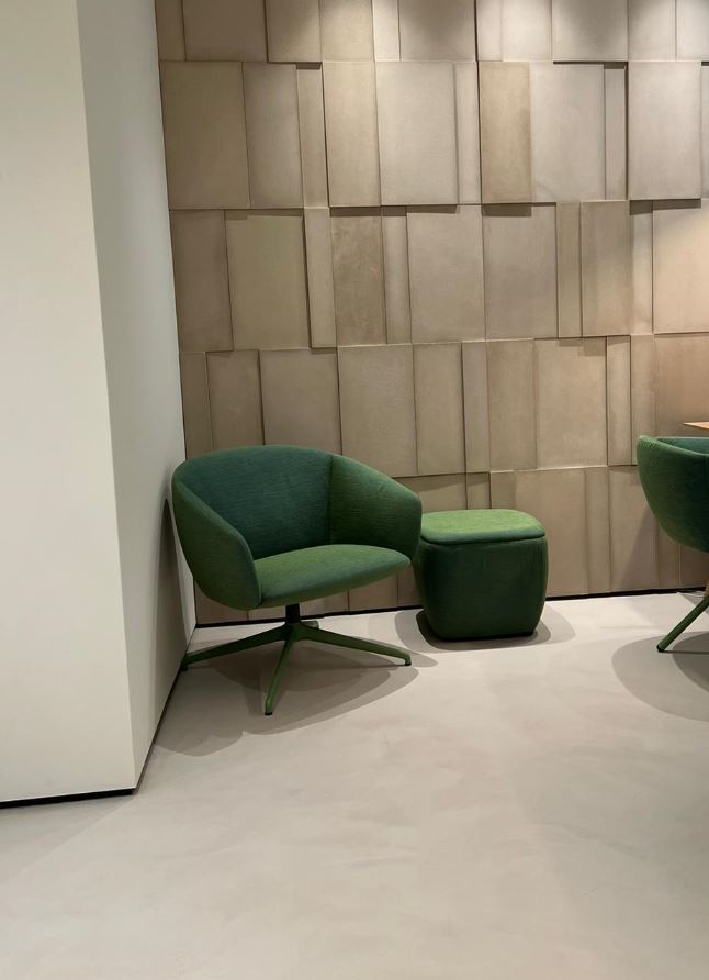 במראה 3 סוגי עצים בשלושה גבהים שונים/ מרופד בבד לבד במבחר גוונים' בסיס מתכת בגוון לבן